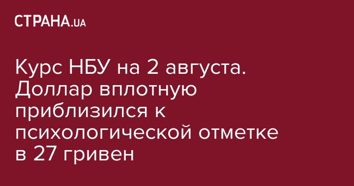 Нацбанк на 2 августа 2018 года по сравнению с предыдущим банковским днем понизил курс гривни почти на 10 копеек до 26,96 гривен за доллар. Об этом свидетельствуют данные на сайте регулятора.