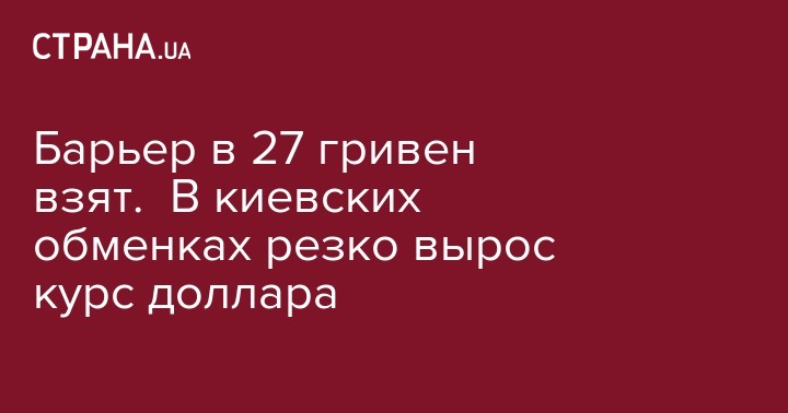 Барьер в 27 гривен взят. В киевских обменках резко вырос курс доллара