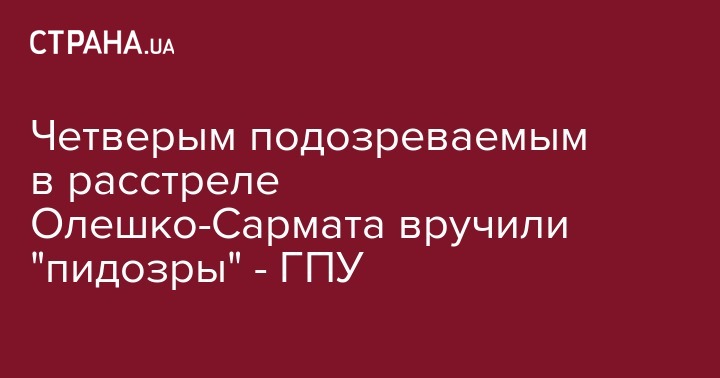 Четверым из пяти подозреваемым в убийстве 43-летнего бывшего добровольца батальона "Донбасс" Виталия Олешко (позывной "Сармат") сообщили о подозрении. Об этом на своей странице в Facebook написал спикер Генпрокуратуры Украины Андрей Лысенко.