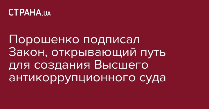 Президент Украины подписал последний закон, открывающий все пути для создания и нормального функционирования в стране Высшего антикоррупционного суда.