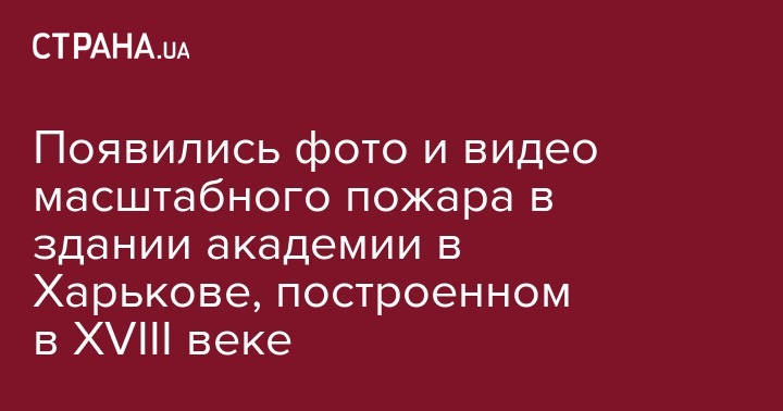 Появились фото и видео масштабного пожара в здании академии в Харькове, построенном в XVIII веке
