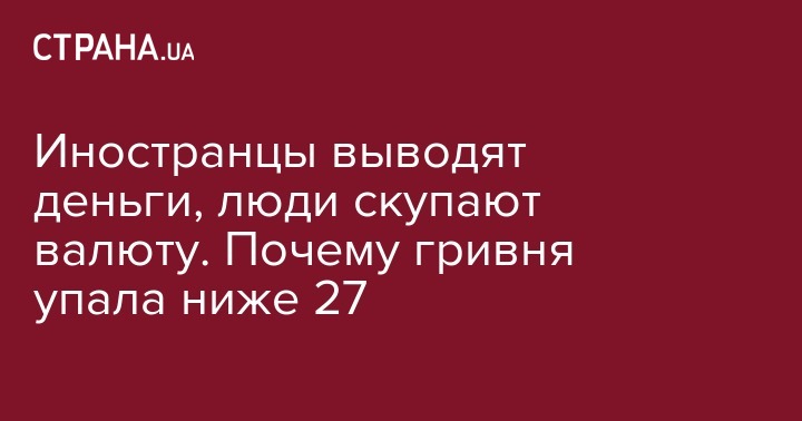 Иностранцы выводят деньги, люди скупают валюту. Почему гривня упала ниже 27