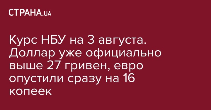 Напомним, НБУ 1 августа начал публиковать курс гривны к доллару отдельно от остальных валют.
