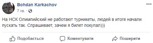 На главном матче всего украинского клубного футбола, который начался в эти минуты в Киеве, случился неприятный инцидент - перестали работать турникеты НСК "Олимпийский".