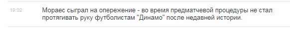 В то же время Террикон пишет, что это Мораес сыграл на опережение, не став протягивать руку динамовцам.