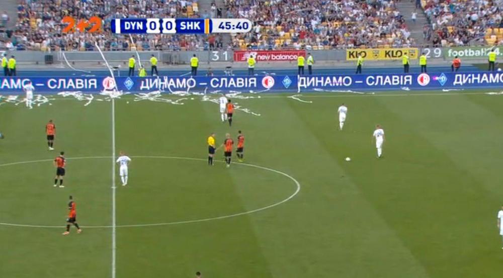 Фаны "Динамо" во время матча с "Шахтером" на НСК "Олимпийский" провели акцию протеста. Сначала они вывесили баннер "Подотритесь своим регламентом", после чего забросали газон поля огромным количеством туалетной бумаги.