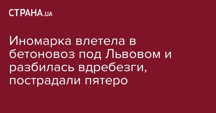 Иномарка влетела в бетоновоз под Львовом и разбилась вдребезги, пострадали пятеро