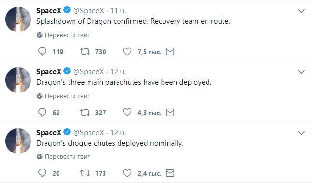 Напомним, грузовой корабль Dragon отправился на МКС в конце мая и месяц пробыл на орбите. Утром 3 августа он отстыковался от станции и через пять часов приводнился у побережья Калифорнии.