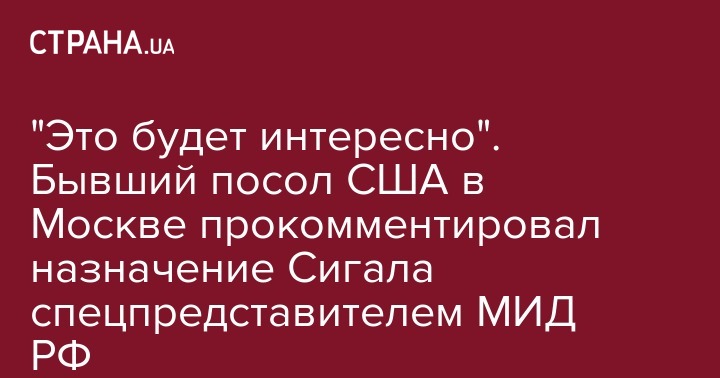 "Это будет интересно". Бывший посол США в Москве прокомментировал назначение Сигала спецпредставителем МИД РФ