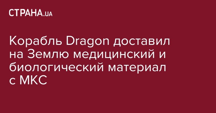 Корабль Dragon доставил на Землю медицинский и биологический материал с МКС