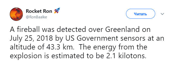 Мощный метеор взорвался над американским радиолокатором в Гренландии, который предназначенным для раннего обнаружения баллистических ракет, сообщает Daily mail.
