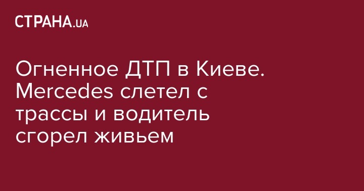В ночь на 6 августа, в Киеве произошла жуткая автокатастрофа. В Голосеевском районе, около 03.00 , автомобиль Mercedes по неизвестным причинам вылетел с автотрассы, перевернулся и загорелся на обочине.