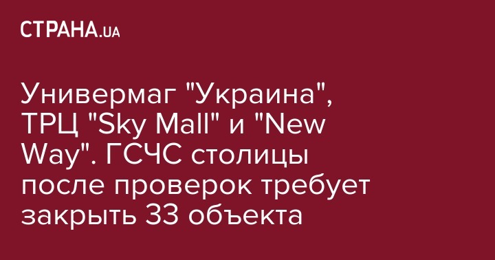 Госслужба по чрезвычайным ситуациям (ГосЧС) в Киеве просит административный суд частично приостановить работу 33 торгово-развлекательных центров, детских садиков, школ и больниц столицы из-за нарушения правил пожарной безопасности, сообщают "Украинские новости".