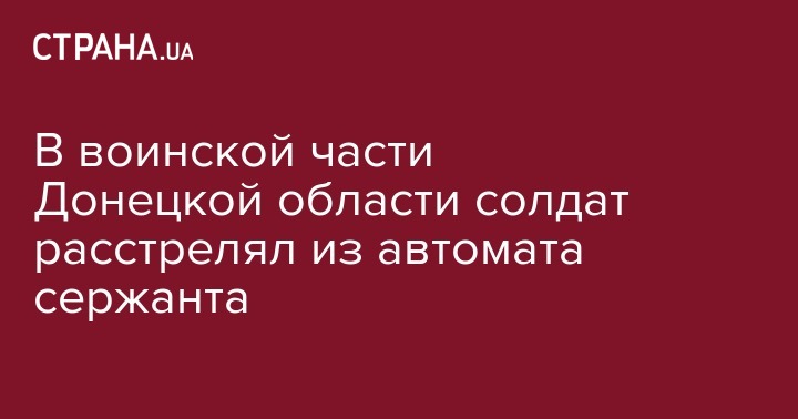 В Донецкой области в одной из воинских частей солдат расстрелял из автомата сержанта. Трагедия произошла в результате возникшего между военнослужащими конфликта.  Об этом на своей странице в Facebook сообщает Военная прокуратура Объединенных сил.