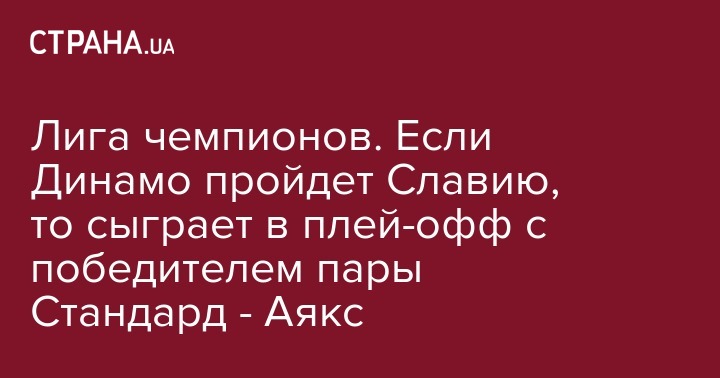 Завтра, 7 августа, киевское Динамо сыграет в Праге против местной Славии, в третьем квалифайне Лиги чемпионов. Если киевляне пройдут чехов, то на стадии плей-офф (борьба уже непосредственно за выход в групповой турнир Лиги чемпионов - Прим. Ред.) они сыграют с победителем пары Аякс - Стандард.