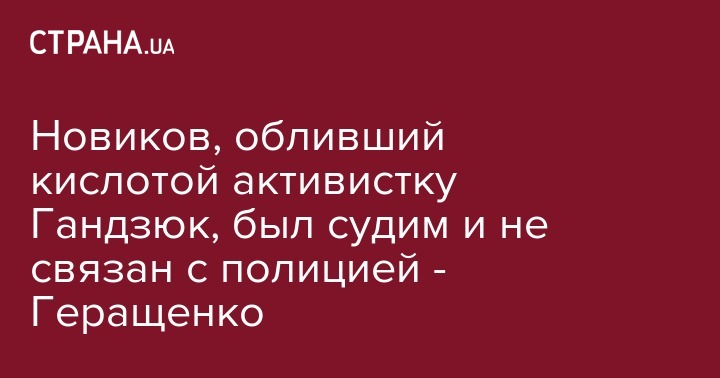 Подозреваемый в нападении на херсонскую активистку Ектерину Гандзюк, которую облили серной кислотой во дворе ее дома, к полиции отношения не имеет. Об этом заявил член коллегии МВД Украины, нардеп от фракции "Народный фронт" Антон Геращенко в эфире телеканала "112.Украина".