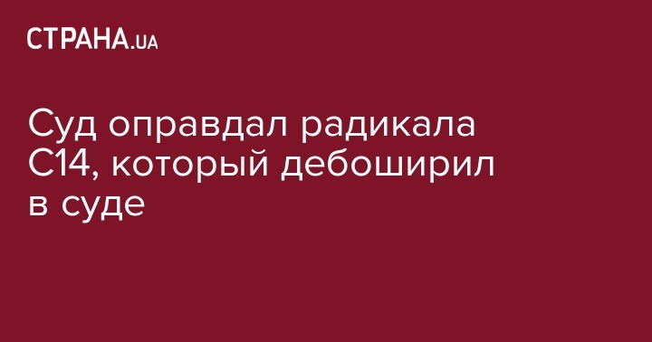 Суд оправдал добровольца и активиста радикальной националистической группировки С14 Михаила Стрижку, который два года назад дебоширил в суде. Об этом на своей странице в Facebook сообщает С14.