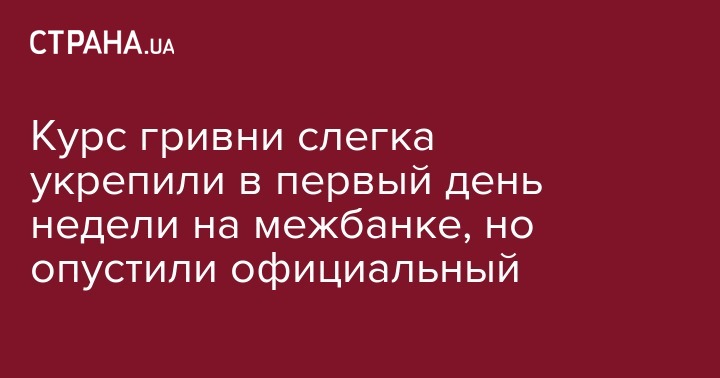 Курс гривни слегка укрепили в первый день недели на межбанке, но опустили официальный