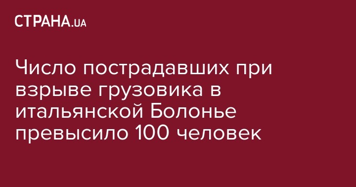В итальянской Болонье число пострадавших в результате взрыва грузового автомобиля, который перевозил горючие материалы, превысило 100 человек. По данным телеканала RaiNews24, 55 человек с ожогами различной степени тяжести были доставлены в больницу Маджоре в Болонье. Еще 18 пострадавших отправлены в больницы в Будрио, Кастель-Сан-Джованни и Бентивольо.