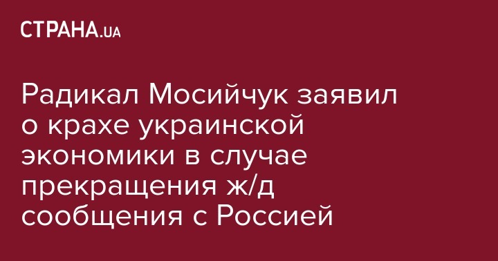Экономика Украины в случае прекращения железнодорожного сообщения с Россией рухнет окончательно. Об этом в эфире телеканала "112 Украина" заявил депутат Верховной Рады Игорь Мосийчук.