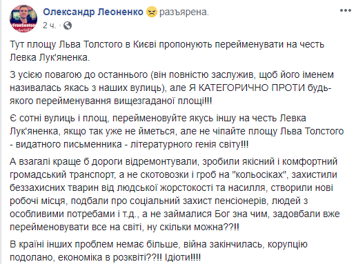 А также интересуются, чем Толстой насолил киевлянам и что эпопея с переименованием площади уже выходит за рамки приличия.