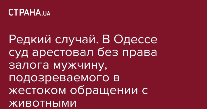 "Сегодня впервые в истории Украины Киевский отдел полиции в г. Одессе ГУ НП в Одесской области объявил гражданину подозрение за совершение преступления, предусмотренного ч. 3 ст. 299 УК Украины (жестокое обращение с животными), и обратился с ходатайством о мере пресечения в виде содержания под стражей", - отметил он.
