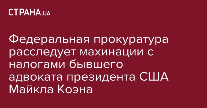 Федеральная прокуратура Нью-Йорка проводит расследование в отношении бывшего адвоката президента США Майкла Коэна по подозрению в махинациях с налогами, сообщает во вторник газета  Wall Street Journal со ссылкой на осведомленные источники.