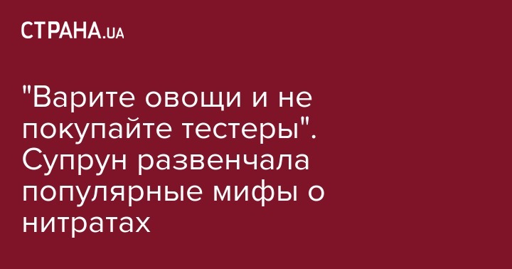 "И помните, овощи - это неотъемлемая часть здорового питания. Бояться нитратов и поэтому снижать количество овощей в рационе - совершенно не нужно", - написала Супрун.