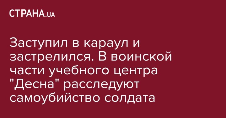 Солдат срочной службы одной из воинских частей учебного центра "Десна" в Черниговской области совершил самоубийство во время несения караульной службы. Об этом говорится в сообщении на странице Учебного центра "Десна" в соцсети Facebook.