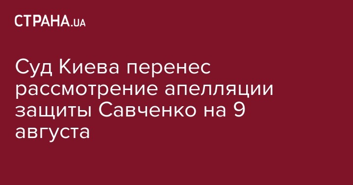Апелляционный суд Киева рассмотрит жалобу адвокатов депутата Верховной рады Надежды Савченко на решение Шевченковского районного суда столицы о продлении ареста их подзащитной в четверг, 9 августа. Такое решение коллегия суда приняла в среду вечером, передает ТАСС.