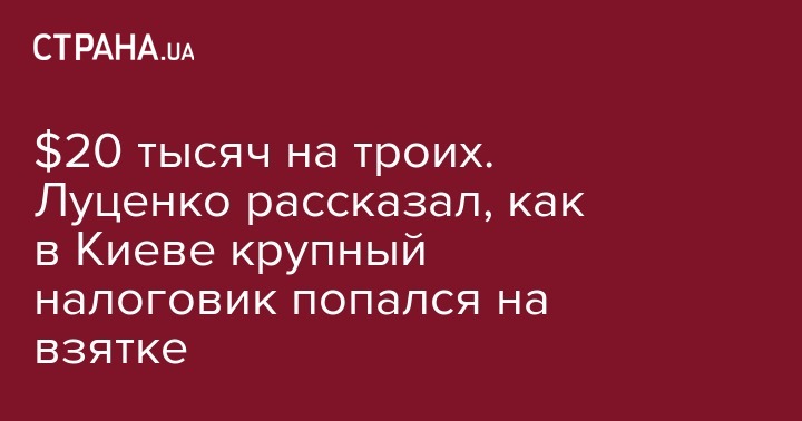 $20 тысяч на троих. Луценко рассказал, как в Киеве крупный налоговик попался на взятке