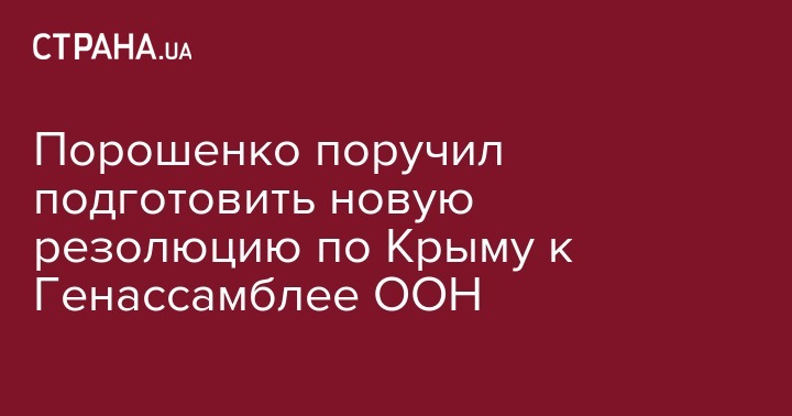 Президент Петр Порошенко поручил дипломатам подготовить новую резолюцию относительно Крыма к следующей сессии Генассамблеи ООН. Об этом он написал в Facebook.