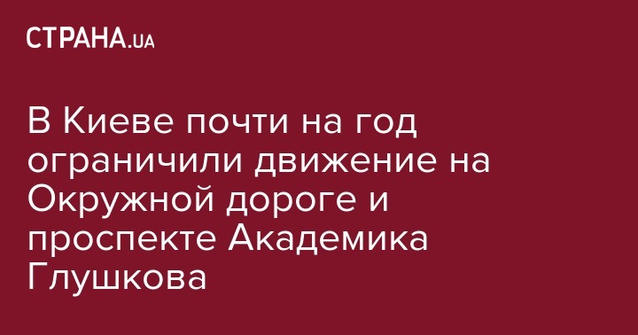 В Киеве почти на год ограничили движение на Окружной дороге и проспекте Академика Глушкова