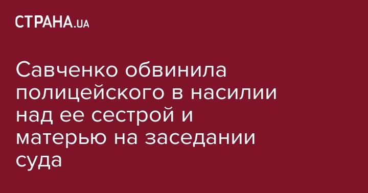 Во время заседания Апелляционного суда Киева один из правоохранителей применил силу к матери нардепа Надежда Савченко и ее сестре Вере. Об этом Савченко, которую обвиняют по целому "букету" статей, заявила в ходе общения с журналистами, которое транслировал телеканал "112 Украина".