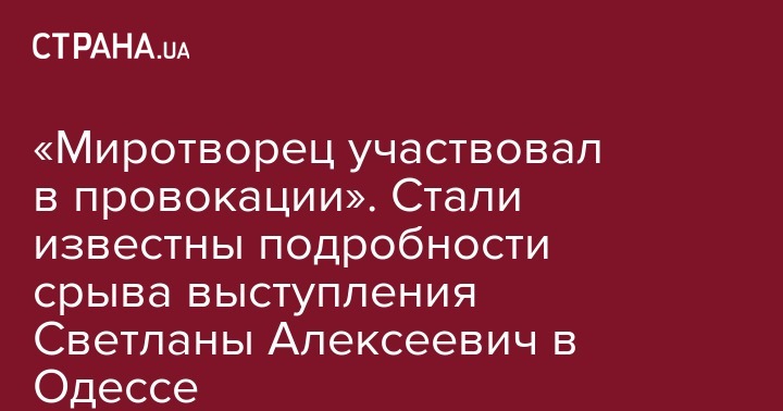 В среду, 8 августа 2018 года в Одессе сорвали выступление лауреата Нобелевской премии по литературе 2015 года Светланы Алексиевич.