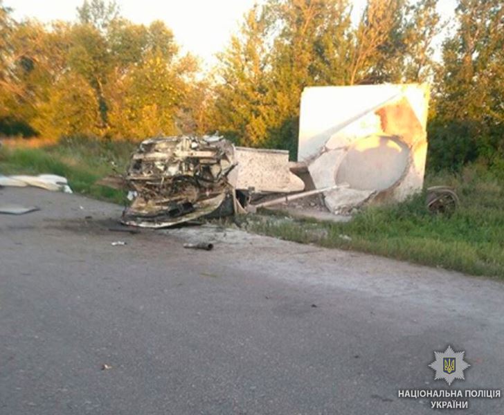 Авто всмятку. Под Полтавой водитель на Mercedes снес автобусную остановку и погиб. Фото