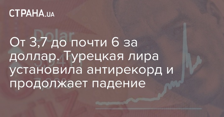 От 3,7 до почти 6 за доллар. Турецкая лира установила антирекорд и продолжает падение