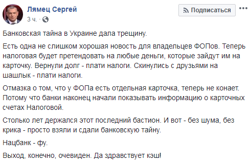 Фискальная служба уже направила банкам требование предоставлять информацию о всех ФОП и их личные счета. Банкиры согласились им такую информацию передать.
