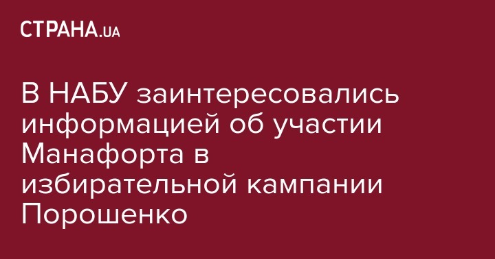 Он напомнил, что когда появились материалы так называемой "амбарной книги" Партии регионов, там фигурировала фамилия Манафорта, о чем НАБУ сообщило в свое время.