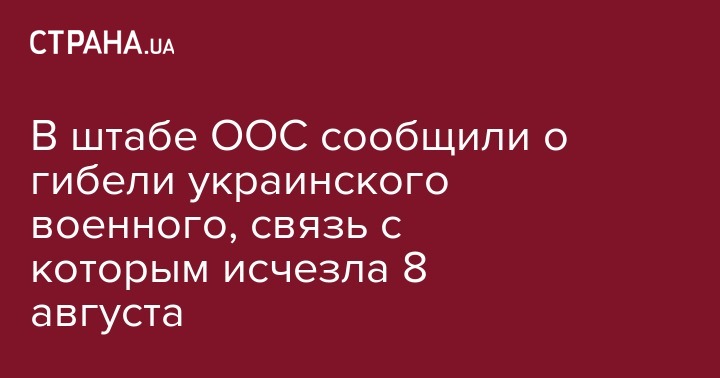 В пресс-центре операции объединенных сил (ООС) сообщили о гибели военнослужащего Дмитрия Украинского, связь с которым пропала 8 августа во время выполнения боевого задания.
