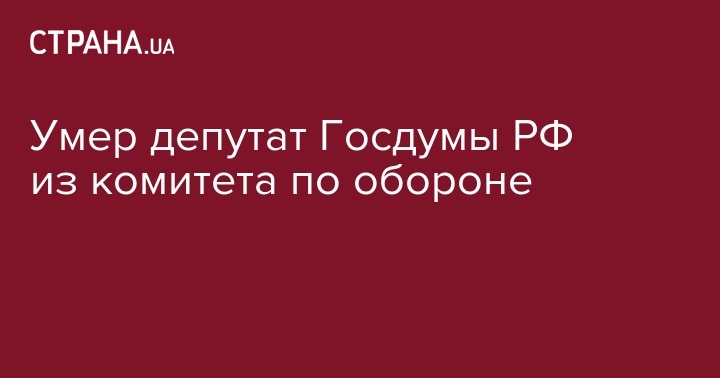 Умер депутат Госдумы РФ из комитета по обороне