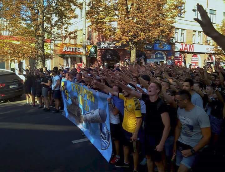 Футбольные ультрас прошли по улицам Днепра с нацистким приветствием и файерами