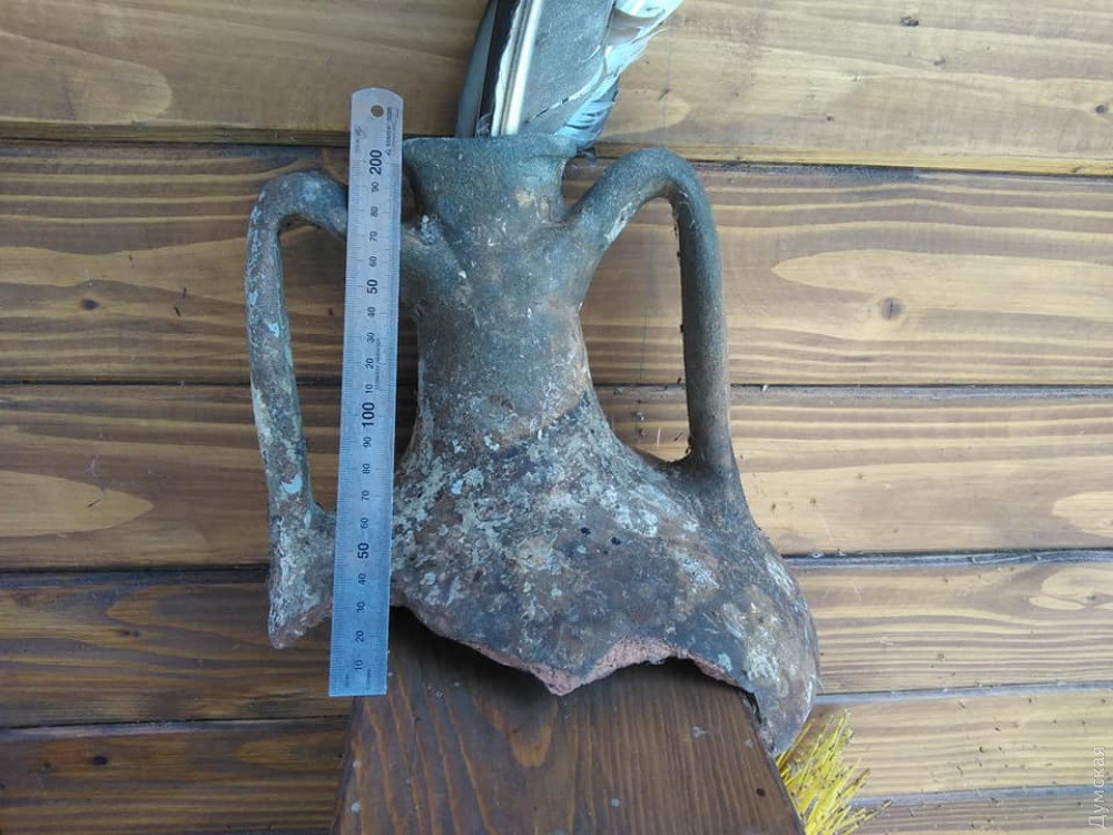 По его словам, археологические находки обнаружил местный дайвер из села Приморское. Среди находок выделяется крупный фрагмент хиосской пухлогорлой амфоры V века до нашей эры.