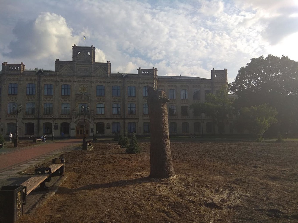 Работники столичного Зеленстроя сегодня, 14 августа, спилили уникальные деревья возле первого корпуса Киевского политехнического университета. Об этом пишет издание "Хмарочос".