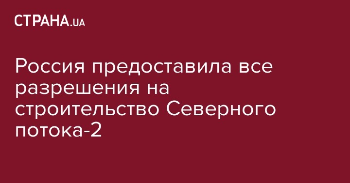 "На сегодняшний день получены все разрешения, необходимые для строительства российского участка газопровода "Северный поток-2", - говорится в сообщении.  Разрешение было выдано Федеральной службой по надзору в сфере природопользования РФ (Росприроднадзор).