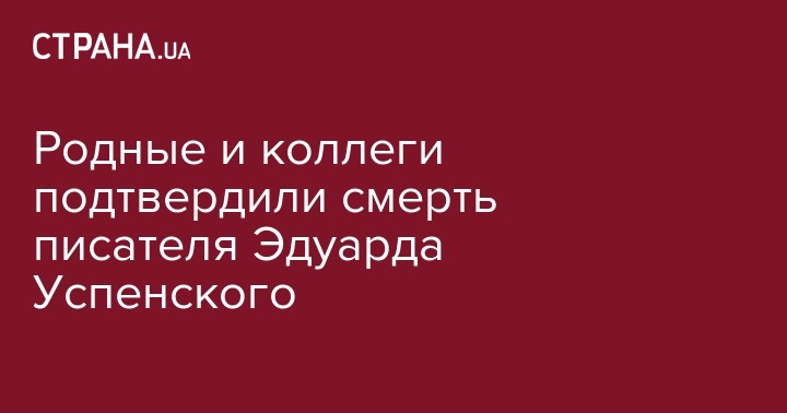 Глава правления киностудии "Союзмультфильм" Юлиана Слащева подтвердила информацию о смерти писателя Эдуарда Успенского.