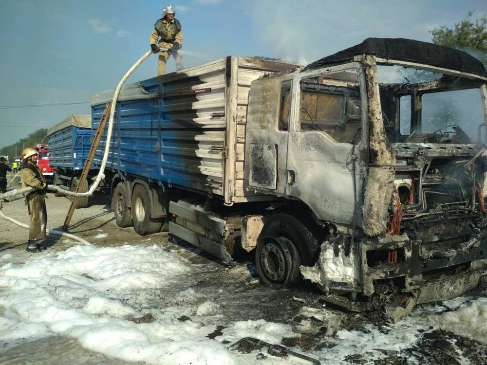 Водитель и пассажир грузового автомобиля в результате пожара не пострадали. Причину возникновения возгорания устанавливают правоохранители.