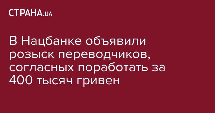 В Национальном банке Украины объявили тендер на закупку услуг по письменному, устному и синхронному переводу за 400 000 гривен. Об этом говорится в тендерной документации центробанка, обнародованной в системе публичных закупок ProZorro, передают Украинские новости.
