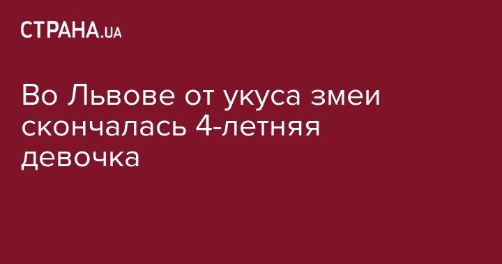 Змея укусила ребенка в ногу. Девочку перевезли в 8-ю городскую клиническую больницу Львова. "От врача поступило сообщение о том, что 14 августа в помещении больницы умерла девочка 2014 рождения, жительница Львова", – говорится в сообщении.