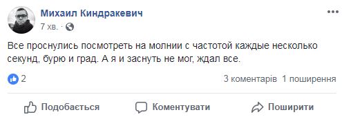 Около 3:00 в ночь с 15 на 16 августа на Киев обрушились дожди, град и мощнейшие грозы. Небывалые масштабы стихии оторвали среди ночи от уютных кроватей огромное количество жителей города, принявшихся закрывать окна и спасать сушившееся белье.